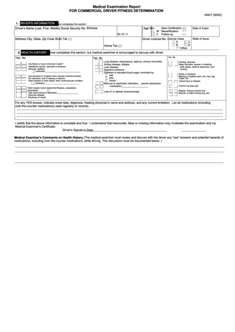 Form 649 F - Birthdate m / d / y. 03 export or print immediately. Driver's information driver completes this section driver's name (last, first, middle) social security no. 53 medical examination form templates. Since the issuance of the regulations for physical qualifications of commercial drivers, the federal motor carrier safety administration (fmcsa).